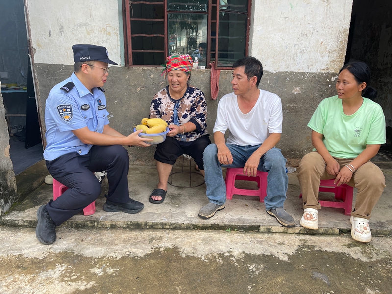 哈尼族李阿婆看着送到手中的水果,皱纹里盛满笑意:“派出所的娃娃们,像自家孩子一样,总惦记着我这老婆子!”村口嬉戏的孩童们接过民警递来的芒果,欢呼雀跃,金黄的果肉沾满嘴角,笑容比阳光更灿烂。
