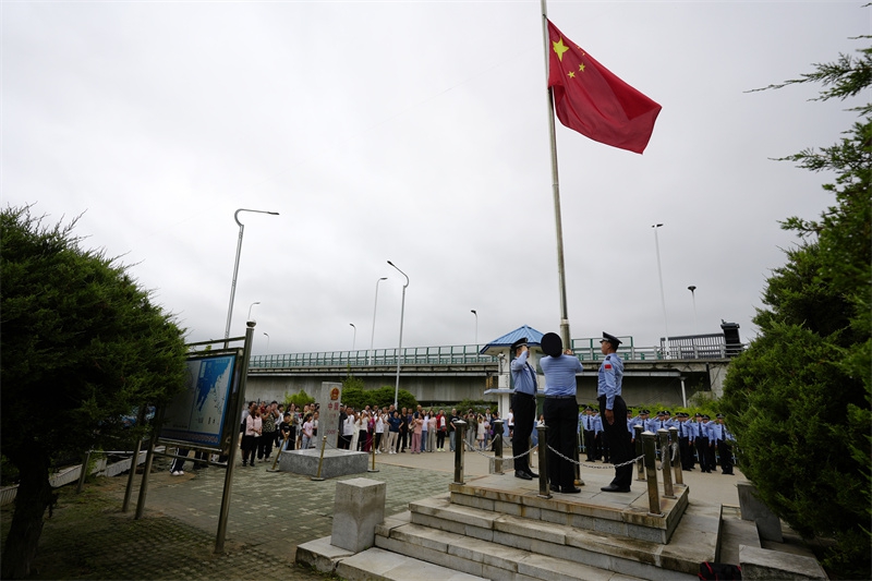 8月14日,圈河出入境边防检查站隆重举行升国旗仪式,并组织党员民警开展重温入党誓词活动,以此深切纪念中国人民抗日战争暨世界反法西斯战争胜利80周年,缅怀先烈伟绩,传承红色基因,凝聚奋进力量。