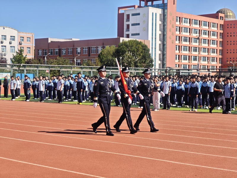 9月18日上午,唐山边检站民警代表与唐山市海港中学1000余名师生齐聚校园,以“铭记‘九一八’传承爱国魂”为主题开展纪念活动,用庄严仪式与沉浸式教育重温历史。
