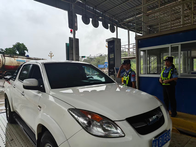 为应对台风天气带来的挑战,该站全面启动应急预案,坚持“严管控”与“暖服务”并重。一方面加密出入境人员、车辆查验频次,守牢边境安全关;另一方面将人性化服务贯穿工作全过程:检查站大棚下的LED显示屏实时滚动播放交通安全提示与最新天气预报,为过往司乘提前预警风险;执勤民警主动清理通道积水、疏导交通,确保车辆通行安全顺畅;针对滞留或遇困旅客,民警们还贴心提供热水、路线咨询等便民服务,让风雨中的行程多了一分温暖。