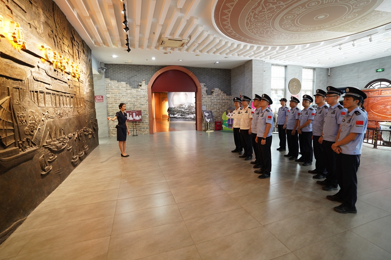 随后,民警代表走进梧州市博物馆,从馆外历史遗留的大炮、到记载梧州革命斗争史的老照片,每一件文物都成为串联历史的 “钥匙”。民警们聆听讲解员讲述当地群众与爱国志士携手保家卫国的故事,深刻感受到中华民族在危难关头凝聚起的磅礴力量。“这些展馆不是冰冷的陈列,而是鲜活的‘精神课堂’” 柳州站陈婷表示“从大同酒店的 ‘建党初心’ 到博物馆的 ‘民族抗争’,不仅触摸到了历史的温度,更读懂了 ‘不屈不挠、奋勇前行’的民族精神内核,这将成为今后我们坚守国门的精神动力。”民警在历史与现实的交汇中,进一步凝聚起共建协作、共担使命的共识。