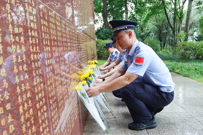 秋日的百色起义纪念碑广场,松柏苍翠,庄严肃穆。9月29日,广西边检总站百色边境管理支队的50余名民警整齐列队,向革命先烈默哀致敬,献上朵朵菊花。在第十个烈士纪念日来临之际,这支戍守南疆国门的移民管理队伍,通过开展庄严的纪念活动传承红色基因,筑牢忠诚警魂。