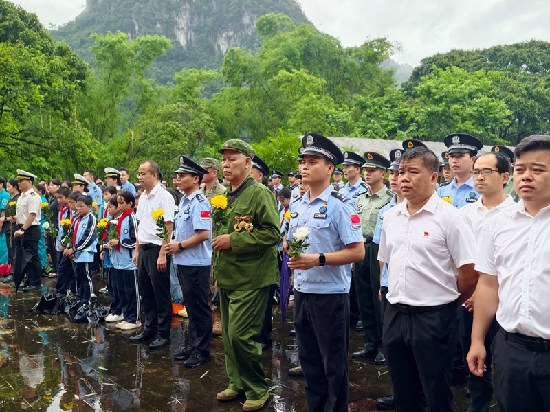 在位于中越边境附近的平孟镇烈士陵园,该支队平孟边境派出所民警与参战老兵、驻地干部群众一起开展烈士纪念活动。教导员梁宇带领年轻民警重温入党誓词,铿锵誓言在山谷间回荡。“我们要把对先烈的缅怀,转化为守边固边的实际行动。”他指着不远处蜿蜒的边境线说。