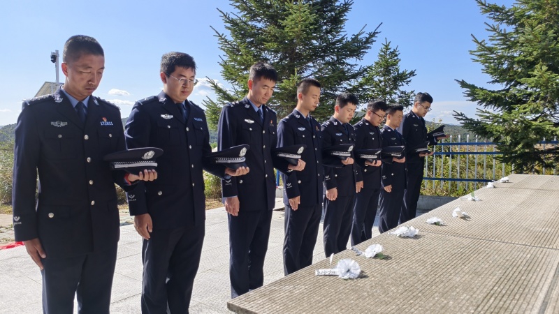 9月28日上午,珲春市敬信镇烈士纪念碑前松柏苍翠,阳光透过枝叶洒下斑驳光影,更显肃穆。身着藏蓝警服的民警们早早列队集结,肩章上的警徽在晨光中熠熠生辉。祭扫活动开始,1名民警代表手捧缀有“缅怀英烈致敬忠魂”字样的花束,迈着沉稳的步伐走向纪念碑,将花束轻轻放置在基座上,随后,全体民警依次上前,献上了挂在各自胸前表达哀思的白花。“全体肃立,默哀开始!”随着现场负责人一声指令,民警们整齐脱帽,低头静立。3分钟的默哀时间里,民警们一同追忆那些为家国安宁献身的英烈——从抗联时期的雪地鏖战,到和平年代的边境守护,一代代戍边人用生命筑起了安全屏障。