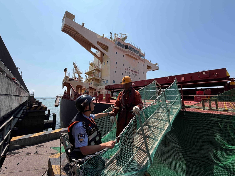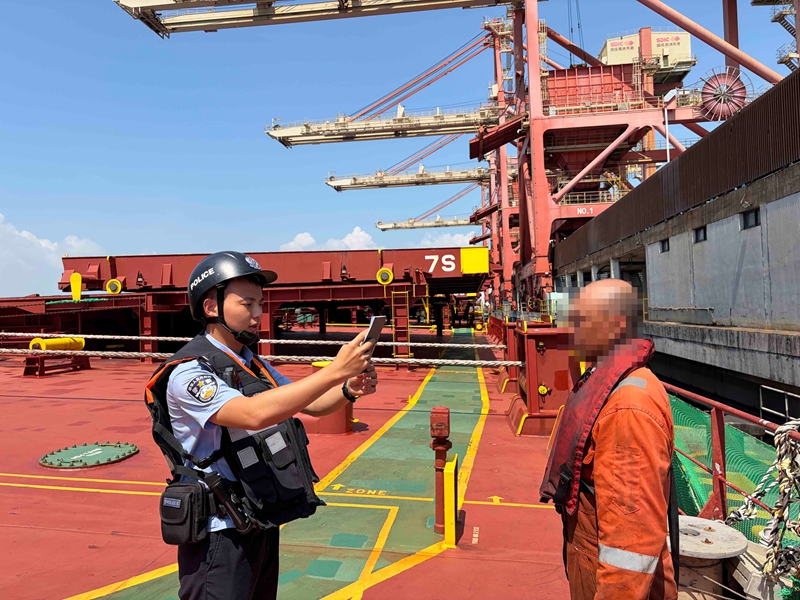 2025年9月29日,莆田出入境边防检查站接到代理公司紧急求助电话称:该公司代理的一艘巴拿马籍“泰安”轮,一名船员在船工作时眼睛不慎落入铁屑,导致眼部不适,请求下船就医。