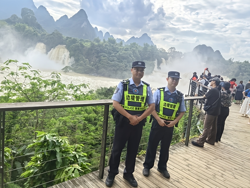 由于瀑布水量过大,虽景区采取游客限流措施,大部分区域也限制通行,但依然有不少游客慕名前来观瀑。为营造舒心、安心、放心的旅游环境,崇左边境管理支队硕龙边境派出所安排警力在景区重要点位巡逻值守,配合景区工作人员检查相关设施安全防护性能,在服务游客的同时也提醒游客注意安全,有效维护景区秩序,真正让全国游客“开开心心来、平平安安回”!