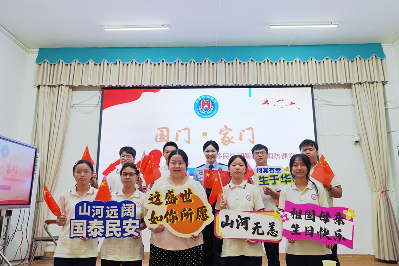 为厚植青少年国防情怀,增强学生国家安全意识,在国防安全教育月期间,9月30日,梧州出入境边防检查站移民管理警察受梧州市总工会邀请,参加“中国工人大思政课”广西篇暨 “国防教育 劳模工匠进校园” 宣讲活动,走进梧州市第六中学,以“国门 家门”为主题,为该校学生带来了一堂生动鲜活、干货满满的国防教育课,让 “国防” 二字从课本走向现实,深深扎根在同学们心中。