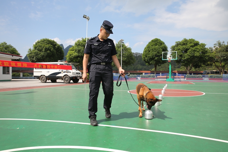 水口关边检站开展“警犬+无人机”实战演练