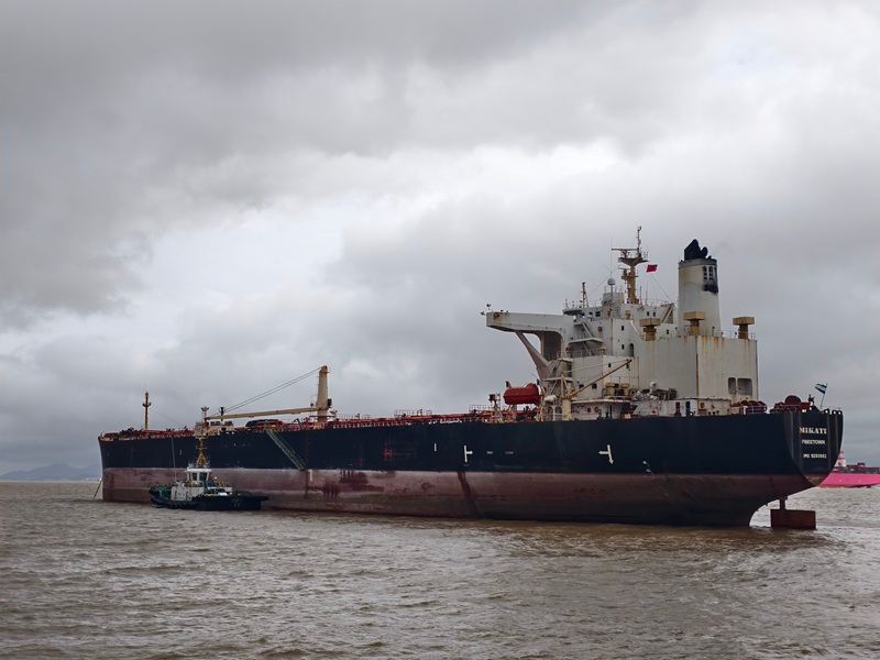 10月18日,在宁波边检站民警的高效查验与严密监护下,顺利完成维修与边防检查手续的塞拉利昂籍超大型油轮“米卡提”轮,缓缓驶离北仑锚地前往新加坡。该轮全长246.8米,宽42米,型深21.3米,载重10.7万吨,是今年以来靠泊大榭港区的大型油轮之一。