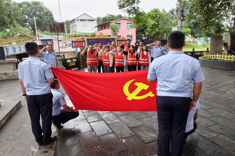 随后,全体党员干部在畹町桥头整齐列队,面对鲜艳的党旗高举右拳,重温入党誓词。铮铮誓言回荡在口岸上空,提醒全体党员“不忘初心、牢记使命”,进一步坚定为党的事业奋斗终身的决心。