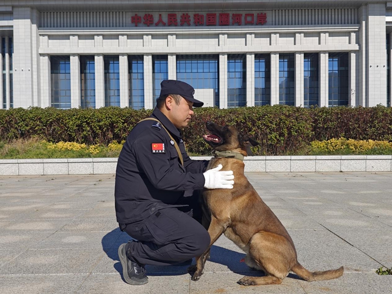 巡逻和检查是我最骄傲的时刻。背上装备,我们跟着巡逻队踏过口岸限定区域的每寸土地,踏过晨霜覆盖的草地,踩过碎石嶙峋的山路,更多时候是在边境检查时穿梭。每当有车辆驶来,阿杰先绕着车辆仔细查看外观,然后踮起脚尖检查车顶,再弯腰钻进车底,用手电筒照着底盘的每一个角落,哪怕是一颗松动的螺丝都不放过。遇到满载货物的大货车,他更是要爬上爬下,踩着轮胎蹬上车厢,逐一检查是否有异常夹带物品,汗水顺着他的额角往下淌,浸湿了警服的后背。夏天地表温度超过四十度,他的靴子踩在滚烫的地面上,可他从没喊过一声累,只是偶尔会揉揉腰,再摸摸我的头说:“黑龙,再坚持一下,不能漏过任何疑点。”我则跟在他身边,用鼻子仔细嗅闻每一处缝隙,车厢里、驾驶室、货物堆里,只要有一丝可疑气味,我就会停下脚步,对着目标狂吠示警。有一次,我闻到一股奇怪的化学气味,顺着气味绕到一辆面包车后,对着后轮拱狂叫,阿杰立刻警觉起来,找来工具拆开轮拱的装饰板,果然查出了藏在里面的一批非法运输的管制药品。阿杰摸着我的脑袋不住地夸我“立了大功”。那一刻,我挺着胸脯,觉得所有的锻炼都值了。