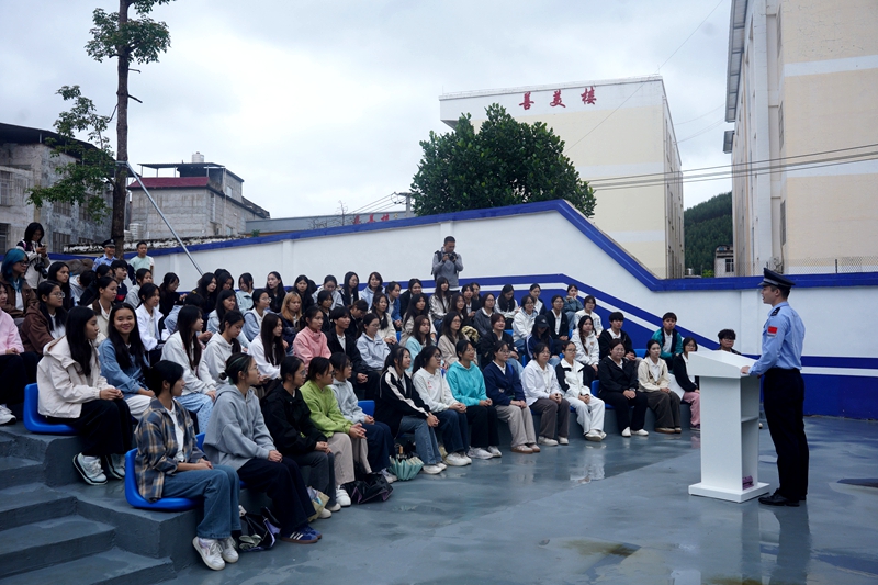 在派出所露天红色影院,民警结合自身戍边经历,分享了该所民警小雷从3米高房顶跳下抓毒贩、凌晨2点帮助外地货车司机沿途5公里找回丢失货物、打击涉边类违法犯罪的真实故事。最后,民警还向学生们普及了边境管理相关法律法规,告诉同学们,不要相信“国外高薪务工骗局”,增强自我保护意识。