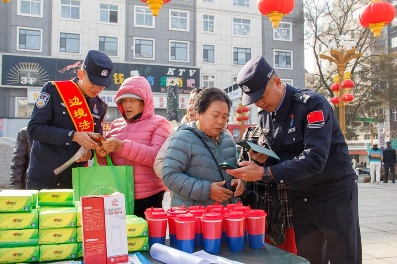 “以前觉得边境政策离我们很远,今天转发朋友圈能领礼品,还学到很多知识,知道了维护边境安全是我们每个人的责任。”群众张女士对白山边境管理支队长白镇边境派出所的创新举措表示赞许。11月7日,长白镇边境派出所创新宣传形式,通过“线上集赞送好礼+线下多点宣讲”的方式,将边境政策法规送到群众身边,筑牢边境地区安全防线。