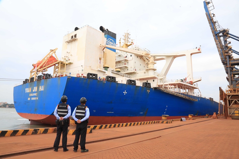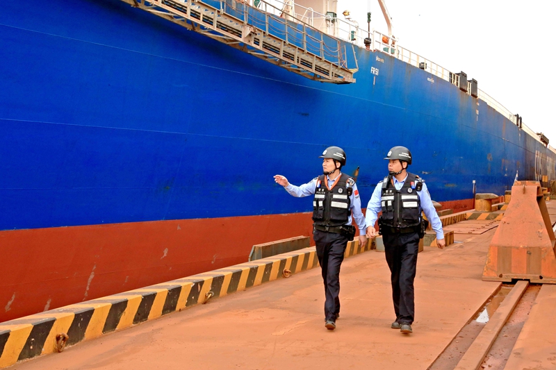 “此次靠泊的新加坡籍‘远津海’轮,本航次约载22.5万吨铁矿进港,计划在这里完成全部卸货。”正在现场执勤的莆田边检站执勤一队民警肖海峰说道,为保障大型船舶快速通关,按照“一船一策”原则,科学制定勤务方案,提前摸排核查船舶信息和航行轨迹,第一时间为“远津海”轮办理边检手续,提前审核登轮作业人员和搭靠船舶信息,节约船舶滞港时间,确保船舶作业“零等待”,出境入境“零延时”。