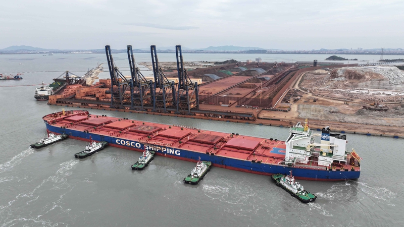 作为东南沿海最大的铁矿石中转枢纽,福建首个、全国第六个可停靠40万吨级船舶的深水良港,罗屿作业区如今已实现超大型矿石船接卸常态化。来自巴西、澳大利亚等国的铁矿资源,经这里中转至长江中下游各省,及日韩、东南亚等国家和地区,串联起内陆腹地与全球市场的贸易纽带,更撑起了两岸铁矿中转的“半壁江山”,为助力莆田打造“亿吨大港”、促进两岸融合发展和“一带一路”建设、国际国内双循环注入强劲动力,推动福建海洋经济高质量发展。