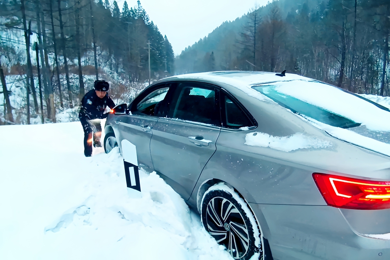 连日来,吉林省长白朝鲜族自治县降雪不断,部分路段积雪结冰,交通受阻。11月29日15时左右,一名返乡司机驾车行驶至长松岭隧道口附近时,因未及时更换雪地胎,车辆突发打滑失控,径直侧滑至路边积雪中,无法脱困。司机惊魂未定,虽仅面部轻微擦伤,却因车辆被困束手无策,周边群众见状迅速前往长白县长白镇边境检查站进行求助。