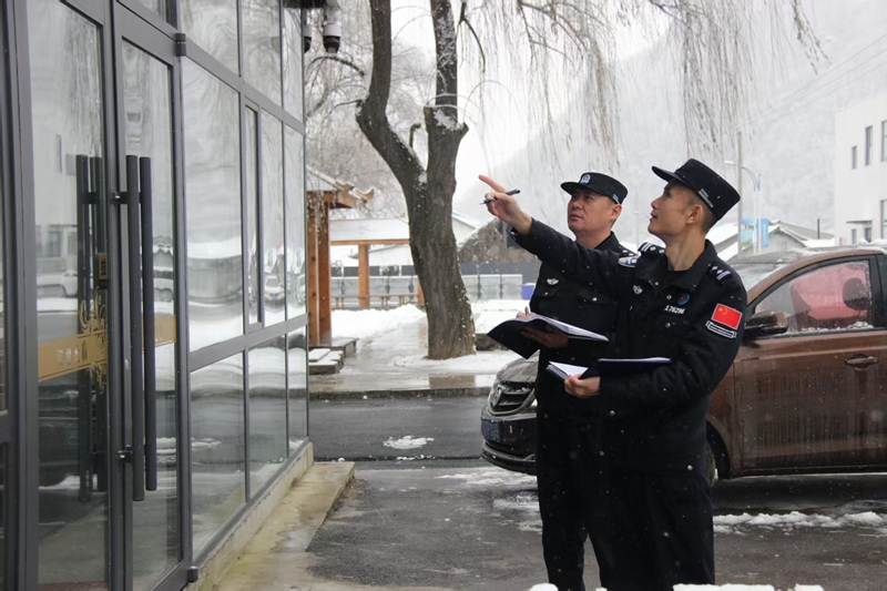 在G331国道施工现场,民警反复叮嘱施工人员:“要积极配合加固工程,这是利国利民的大事!”桦皮村村民纪志强感慨:“雪这么大,无论白天黑夜,都能看到警察在巡逻。村里的粮库、江边儿的独立房、晾烟棚,还有国道工地,每天巡查好几遍。这不就是警察在身边嘛!”