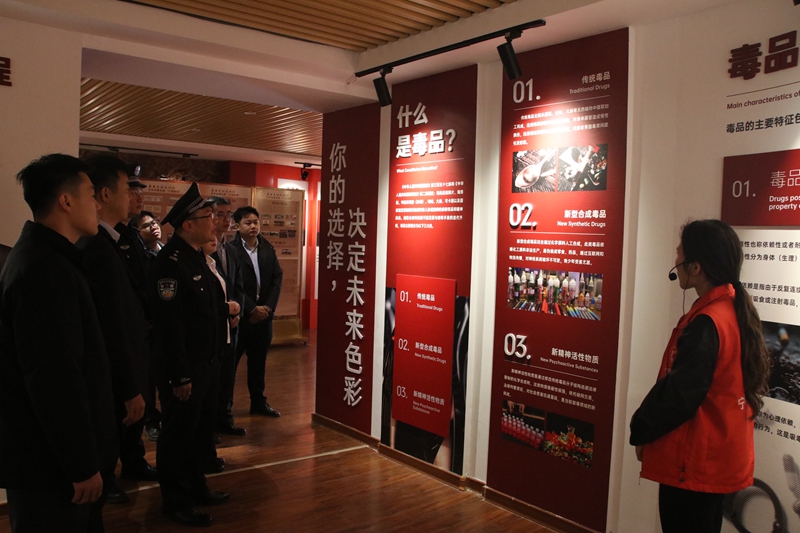 活动现场,在基地讲解员的引导下,全体党员依次参观了禁毒历史、毒品危害、禁毒成果等多个主题场馆。通过图文展板、实物陈列、案例解析、VR体验等多种形式,系统了解毒品的种类、传播途径以及对个人、家庭、社会的严重危害,深入学习我国禁毒法律法规和禁毒工作的严峻形势。一个个触目惊心的案例、一组组发人深省的数据,让全体党员直观感受到毒品的狰狞面目,深刻认识到禁毒工作的长期性和艰巨性。