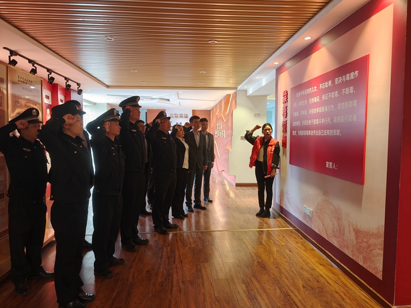 参观结束时,警地党员整齐列队,高举右拳,庄严宣誓:“我是中华民族的儿女,不忘耻辱,坚决与毒魔作斗争,珍爱生命,拒绝毒品……”铿锵有力的誓言回荡在教育基地,既是对禁毒责任的郑重承诺,也是对初心使命的坚定践行。大家纷纷表示,将以此次活动为契机,切实增强禁毒工作的责任感和使命感,不仅要做到自身远离毒品,更要积极向身边群众宣传禁毒知识,争当禁毒工作的宣传员、监督员和战斗员。