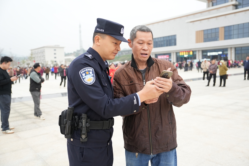 “警察同志,能帮忙照看一下行李吗?”来自湖南的游客谭女士焦急地向民警求助。执勤民警立即上前协助看管行李,并引导其快速办理相关手续。当天,大队还在广场设立了便民服务点,配备饮用水、急救药品等物资,为旅客提供问路指引、行李搬运等贴心服务,累计协助旅客30余人次,现场处理群众求助类警情8起。