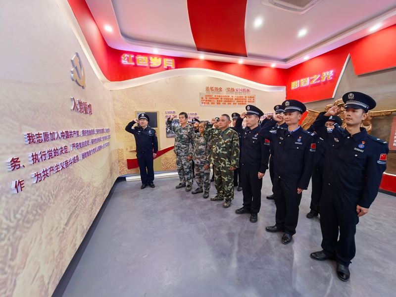 “我志愿加入中国共产党,拥护党的纲领,遵守党的章程,履行党员义务……”在村史馆鲜红的党旗前,警地党员整齐列队,举起右拳重温入党誓词,铿锵誓言回荡在边关上空,既是对革命先辈的致敬,更是对戍边使命的庄严承诺。