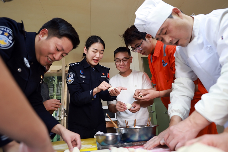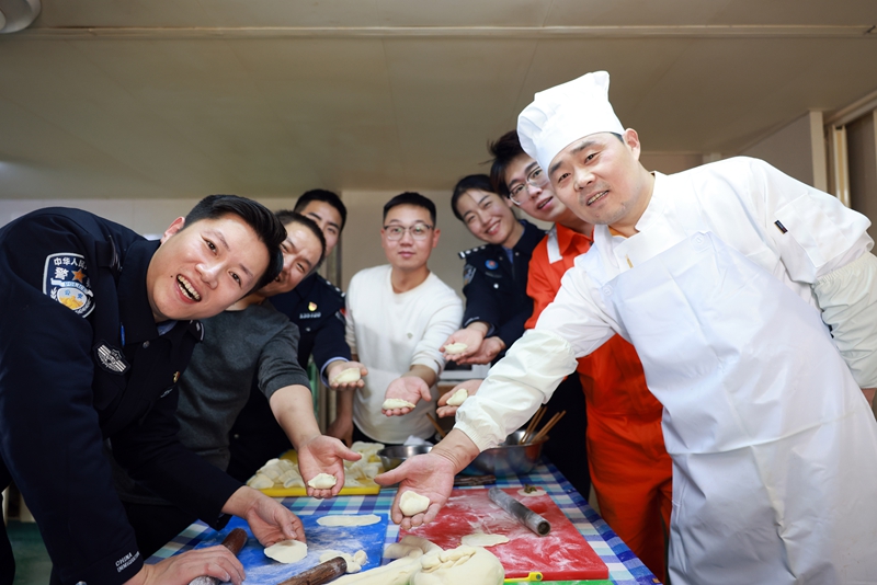 “知道我要干啥去不,各位?”当天上午,民警黄志翼在单位厨房里一边剁馅一边卖着关子。随后,他和战友们带着准备好的食材,登上了那艘载有多名中国籍船员的巨轮。在同事高效完成入境边防检查后,一场特殊的“暖心行动”正在船上悄然展开。