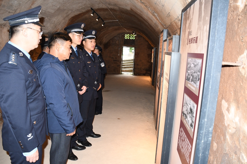 活动首站,全体党员民警前往辖区那逢爱国主义教育基地。在讲解员的带领下,大家驻足于历史图片、珍贵文物前,仔细聆听革命先辈在边境地区浴血奋战、守护家园的英雄事迹,重温那段烽火岁月里的坚守与奉献。斑驳的枪械、泛黄的战地日记、褪色的荣誉勋章,无声诉说着革命先辈们用生命扞卫边疆的赤胆忠心。随后,党员们来到紧邻的防炮洞遗址,实地感受老一辈戍边人在艰苦环境下的战斗生活。狭小的空间、简陋的设施,让在场党员深刻体会到“边疆安宁重于泰山”的责任与担当。“这些历史印记是最好的教科书,提醒我们必须传承好先辈们的红色基因,守护好这片用鲜血和生命换来的土地。”边境派出所民警小李感慨地说。