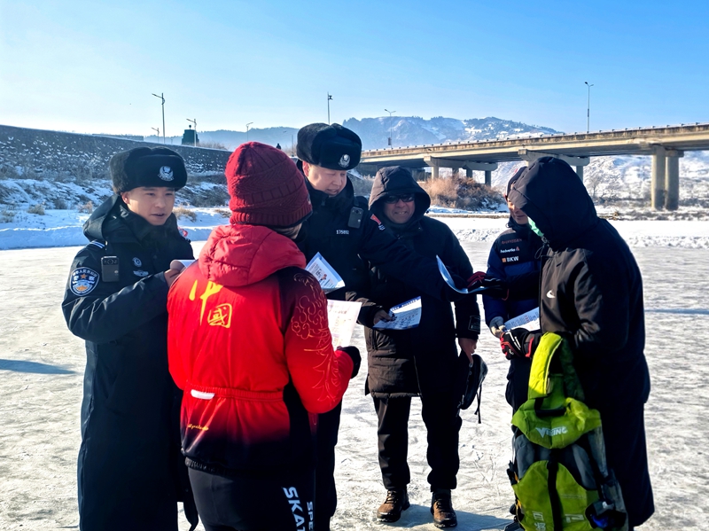 赛前筹备阶段,临城边境派出所主动靠前对接赛事主办方、承办方,聚焦“边境安全+赛事安全”双重点,一方面联合开展3轮实地踏勘与风险评估,重点排查冰层承载力、应急疏散通道、人员密集区管控等赛事安全隐患,梳理整改问题8处;另一方面针对赛场毗邻界江的特殊区位,同步排查边境管控薄弱点,通过设置物理隔离警示带、部署移动警务岗亭、配备应急救援与边境管控装备等举措,构建“定点值守+流动巡查+边境防控”的立体安保网络,既筑牢赛事安全第一道防线,又严守边境管理安全底线。