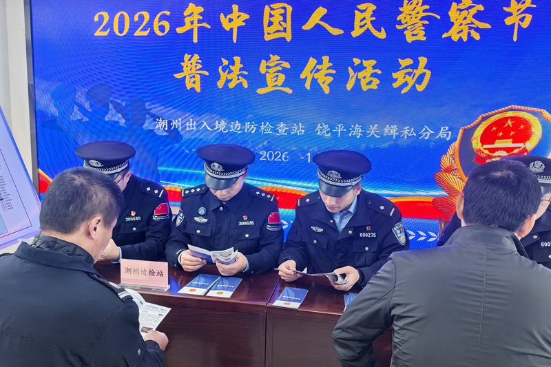 潮起韩江,门通四海。在第六个中国人民警察节到来之际,1月7日上午,深圳出入境边防检查总站潮州边检站携手汕头海关缉私局饶平分局,在潮州港扩建货运码头共同举办“深学笃行铸警魂·忠诚履职保平安”主题系列活动。活动紧扣饶平口岸实际监管需求,通过理论研学、普法宣传、装备展示、港区巡逻、誓词重温等丰富环节,全方位展现新时代国门卫士忠诚担当、奋勇争先的精神风貌。