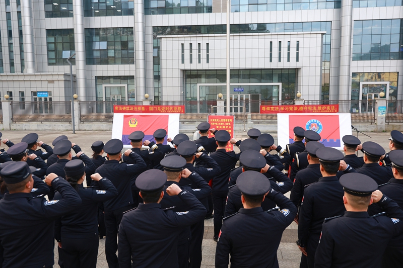 活动现场,全站民警警容严整、列队肃立。伴随着雄壮的国歌,五星红旗冉冉升起,全体民警向国旗庄严敬礼。升旗仪式结束后,站领导宣读警衔晋升命令,随后为新晋衔民警代表颁发警衔晋升证书。随后,全体民警面向警旗、高举右拳庄严宣誓,重温入警誓词。铿锵有力的誓言响彻国门广场,彰显着移民管理警察的忠诚本色与使命担当。