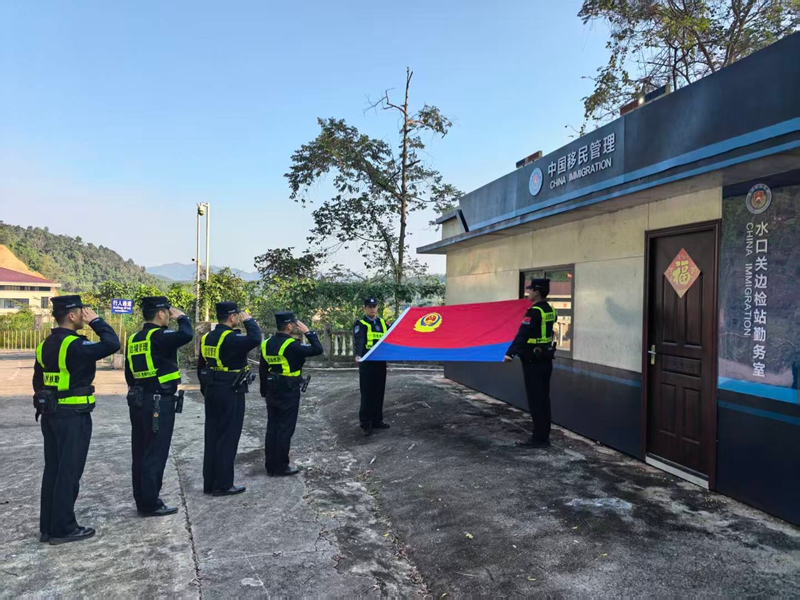 在第六个“中国人民警察节”来临之际,广西崇左边境管理支队那花边境派出所党支部联合水口关边检站执勤一队党支部开展系列党建联创共建活动,以誓言铸忠诚、以巡防固边境、以共学聚合力,用实际行动践行移民管理警察的初心使命。