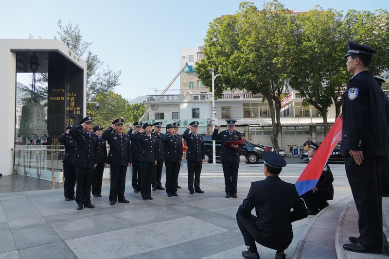 誓言铿锵,初心如磐。随后,双方民警一同前往中英街“警世钟”广场。在庄严的氛围中,沙头角边检站和盐田公安分局民警重温入警誓词。铿锵有力的誓言,不仅展现了人民警察对党忠诚、服务人民的政治本色,更进一步筑牢了忠诚警魂,强化了共同维护沙头角边境特别管理区安全稳定的使命感与责任感。