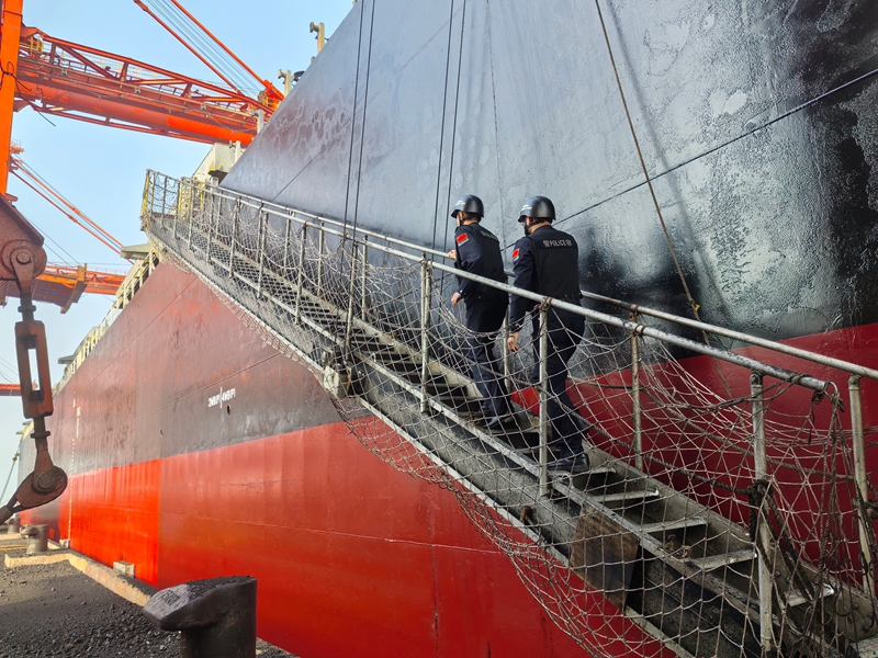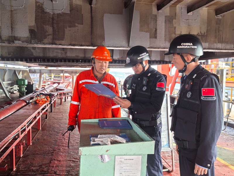 上午9时30分,执勤民警已抵达八所口岸危险品码头,为中国籍“海鑫油619”轮办理船员离船换班手续。他们严格核对船员证件,细致完成人证对照、信息录入等流程,以专业高效的服务确保换班作业安全有序,完成了节日当天的“第一项任务”。11时,民警转赴八所港码头,对巴拿马籍“金谷”轮开展物资供应检查,重点核验物资清单与实际货物是否一致,从源头防范安全隐患,以“零疏漏”标准筑牢口岸安全防线。16时50分,执勤民警再次前往危险品码头,对“海鑫油619”轮实施人员登离轮检查、船舶离港安全评估及防护设施排查。