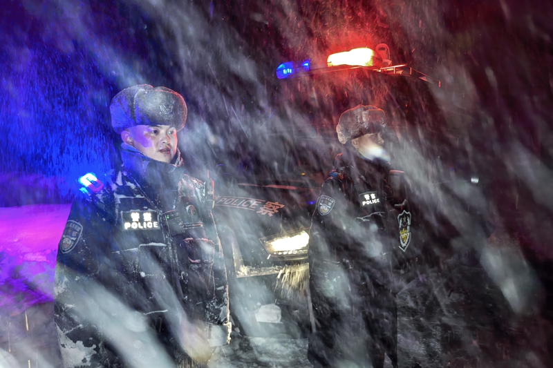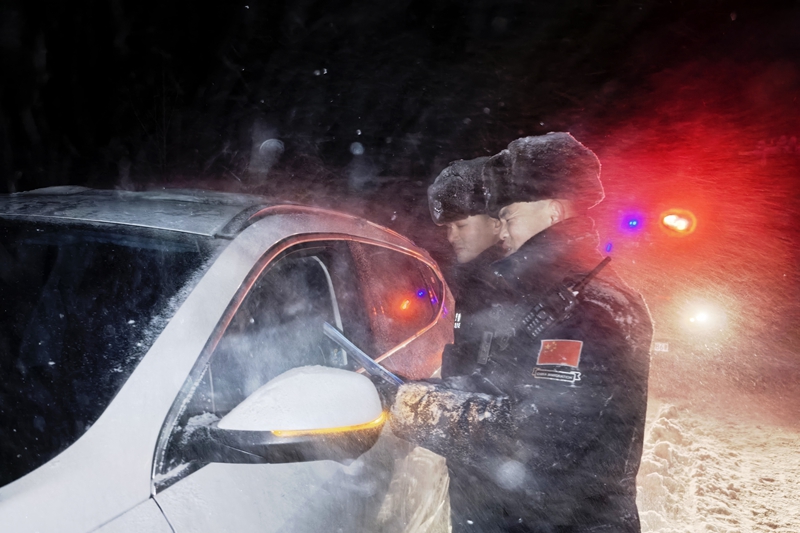 夜幕降临,风雪交加,闪烁的警灯在夜色中格外醒目。民警身着厚重防寒、防护装备,即便身上落满雪花、睫毛凝结冰霜,仍坚守岗位,对过往车辆和人员开展严格查缉。“您好,请出示您的身份证件。”执勤民警逐一拦停车辆,仔细核对驾乘人员身份信息,对车辆后备箱、底盘等关键部位细致检查,严防违禁物品流入流出及可疑人员潜入潜出。同时,民警借助移动查验终端快速录入信息,实现“即查即放”,最大限度缩短车辆滞留时间,在保障查验严谨性的同时,避免群众在风雪中久候。