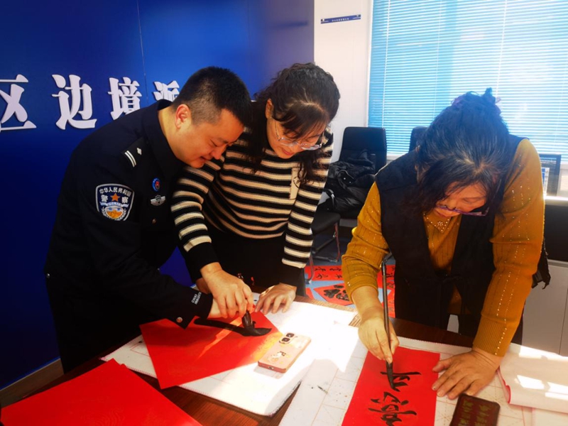 在2026年新春佳节到来之际,为丰富警营文化生活,浓厚欢乐祥和节日氛围,1月28日,长白县经济开发区边境派出所联合长白县艺术界联合会、长白县书法家协会开展“万福迎春?新程绽放”文化进警营活动,为广大民警职工送上新春祝福。