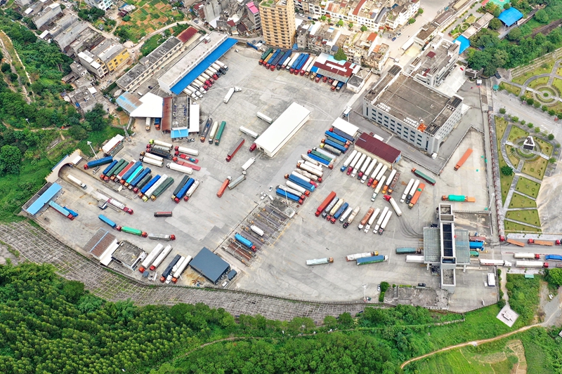 作为中国—东盟陆路通道的重要节点,爱店口岸货场近期一派繁忙景象。在工作人员的有序指引下,满载农副产品、机电产品及东盟生鲜水果的跨境车辆依次完成查验通关流程,驶向中越两国市场。