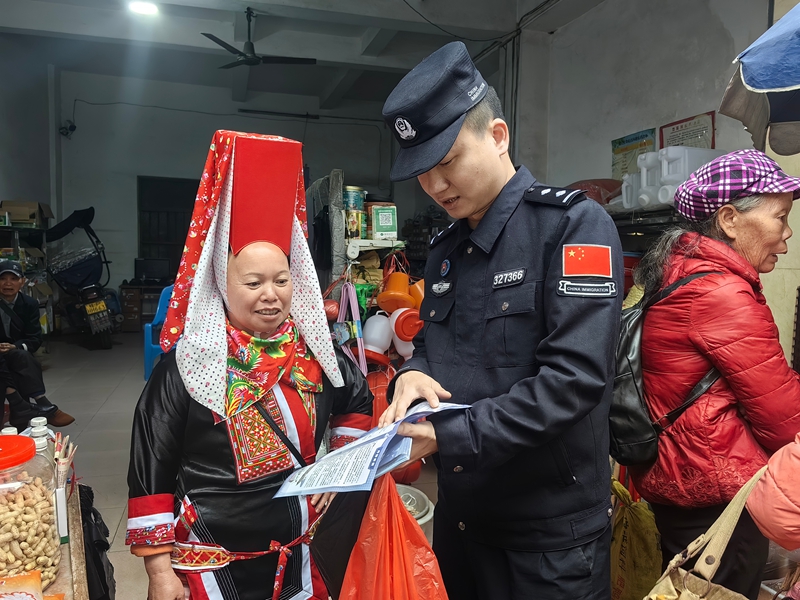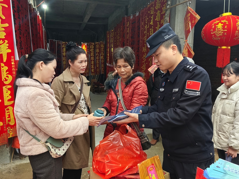 “阿姨,快过年了,手机上那些陌生的链接可千万别点,一点钱就没了”“阿叔,那些说偷渡到国外能挣大钱的,千万别信,都是骗人的,在家平平安安才是真的”民警们一句句接地气的提醒,一张张详实的宣传单,一次次耐心细致的讲解,让年味更暖,让安心常在。