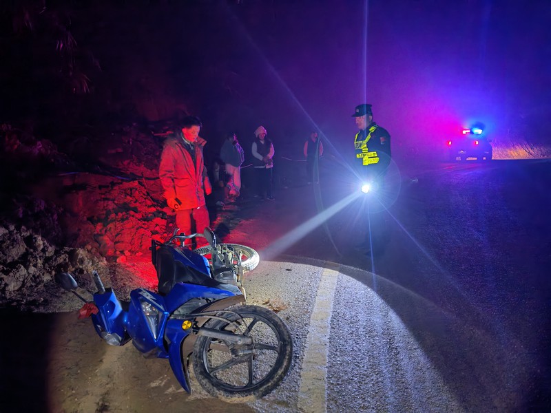 “老乡,我们是念井所的,别慌。”韦州望一边高声安抚,一边蹲下身。民警们迅速分工:两人小心抬开摩托车,避开伤腿;一人立即到前方弯道设置警示;另一人已掏出电话,向山下卫生院说明情况、报出精准位置。
