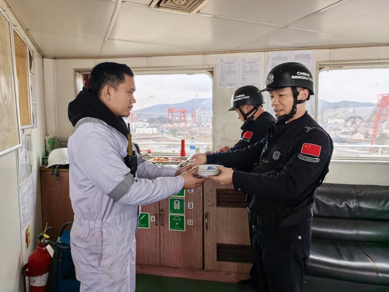 元宵登轮送祝福 国门温情暖船舱