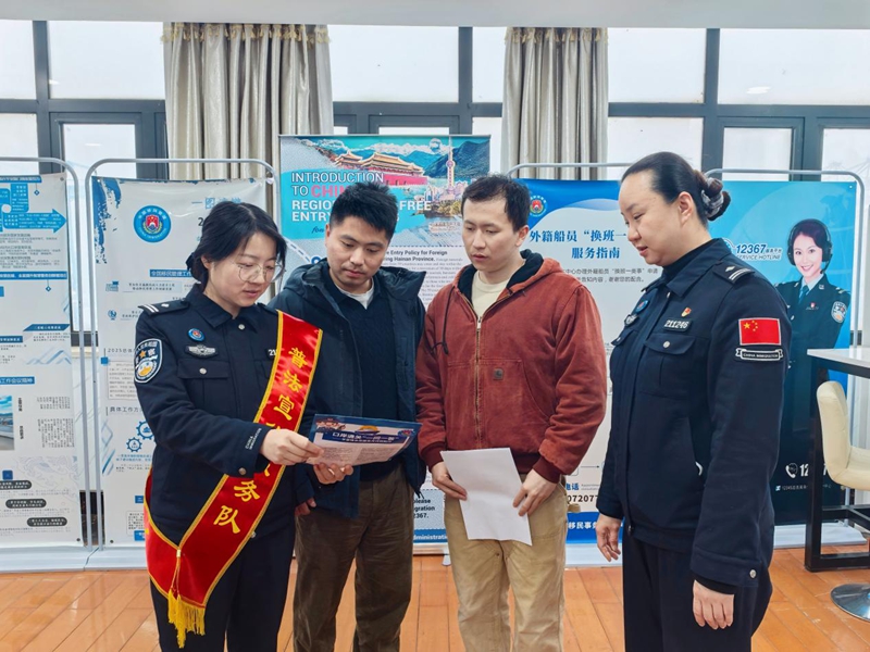 边检民警组建普法志愿服务队,设立便民服务点,通过发放宣传手册、现场答疑、以案释法、登轮走访等形式,面向国际船员、船舶代理、码头作业人员开展精准普法,重点宣讲出境入境管理法、国家安全法等法律法规,以及便民利企政策、口岸管理、反偷渡反走私、12367服务平台等内容,现场解答通关查验、证件使用、安全生产、反诈防骗等群众关心的问题。