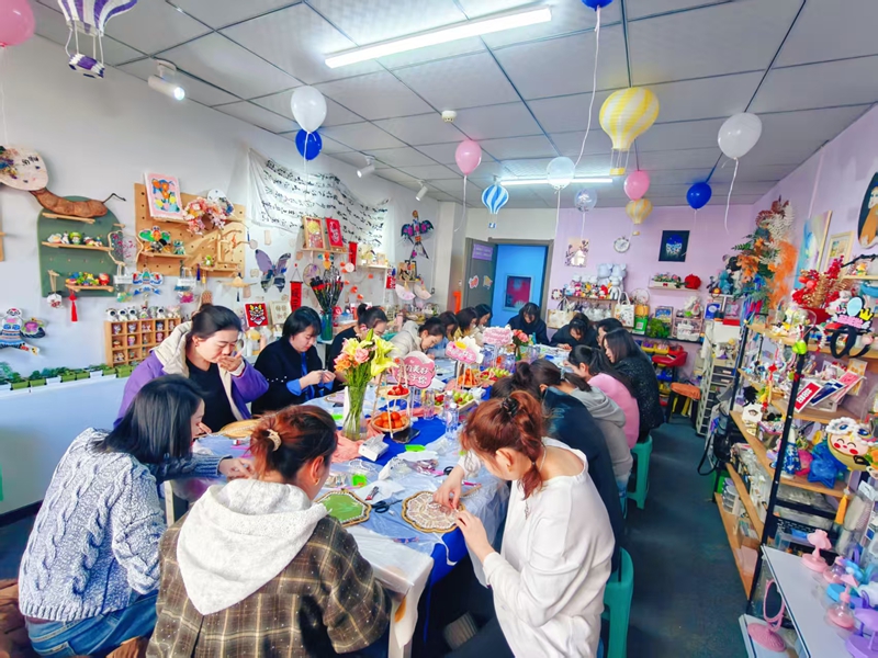活动的压轴环节是体验世界非物质文化遗产——宋锦手作。宋锦因其色泽华丽,图案精致,被誉为“锦绣之冠”。在手工艺老师的指导下,女民警们纷纷化身“能工巧匠”,从选材、裁剪到拼接,一步步将零散的布料制作成精美的宋锦团扇或挂饰。大家沉浸在设计创作的慢时光里,亲身体验了传统非遗文化的独特魅力,看着自己亲手制作的精美作品,每个人的脸上都洋溢着满满的成就感和喜悦。