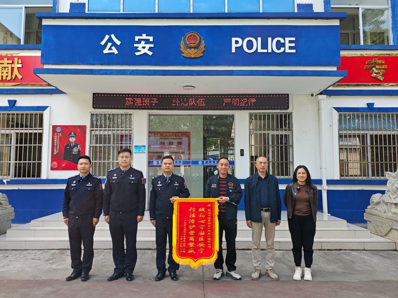 这份温暖在当天下午继续传递。凭祥物流园万通公司负责人带着员工,捧着印有“践初心守园区安宁 行法治护营商繁茂”的锦旗走进派出所。