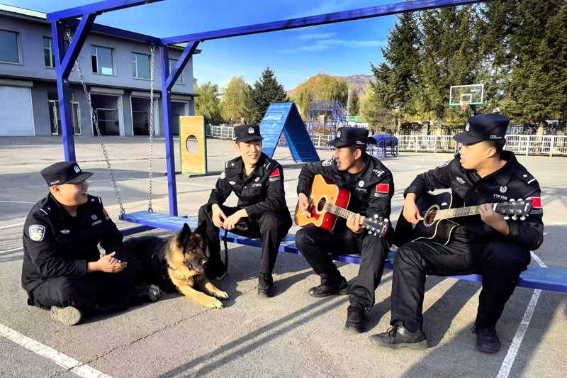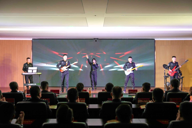 为保障乐队常态化运转,大队专门打造标准化排练室,配齐吉他、贝斯、架子鼓、键盘等专业乐器,为民警提供固定排练、创作交流的专属空间。乐队成员均来自基层一线民警,足迹遍布基层所站、边境村屯社区与旅游景区,已开展多场文艺演出。执勤间隙,他们为过往游客送上暖心歌声,以生动活泼的文艺形式开展普法宣传与政策解读;在村屯广场上,与朝鲜族群众同台互动;营区内部,开展文化慰问活动,有效拉近警民距离,凝聚起守护边疆的强大同心力量。