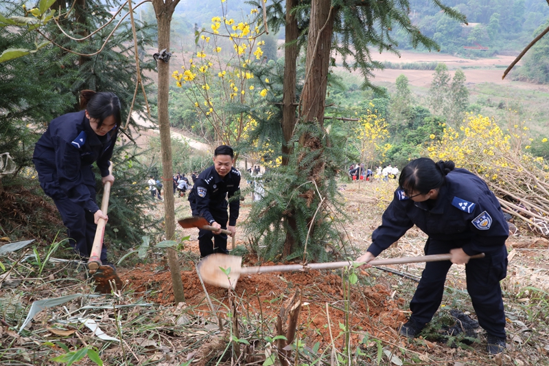 春风拂绿,万象更新。在第48个植树节来临之际,宁明边境管理大队联合驻地多家单位,连日来在派阳山森林公园、边境沿线执勤点及周边村屯同步开展“共植戍边林 守护绿边疆”植树节主题系列活动,以实际行动厚植边境生态底色,为壮美边关再添新绿。