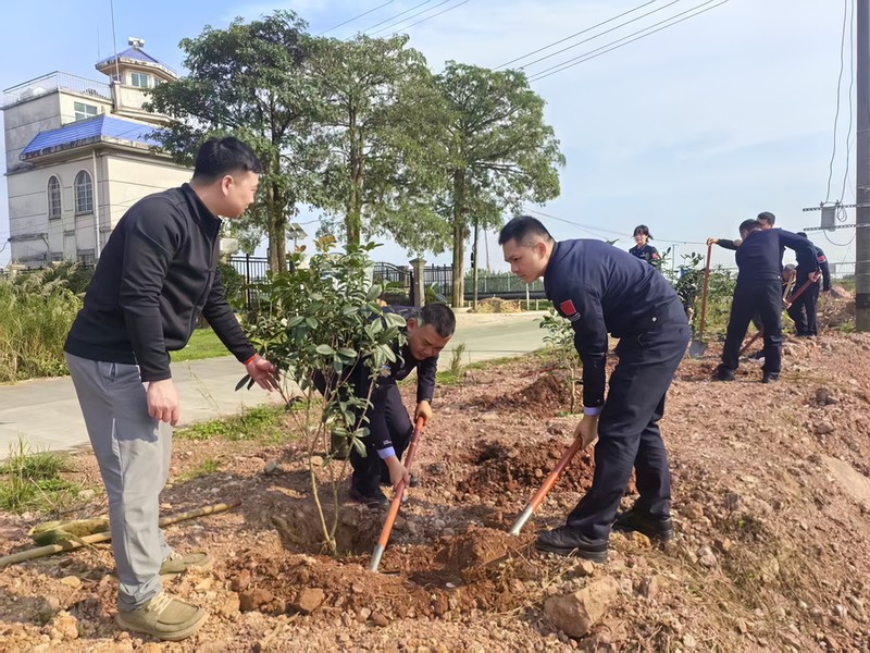 活动现场,警企双方党员分工明确、协作有序,个个干劲十足、热情高涨。大家严格遵循植树规范,挥锹铲土、扶正苗木、填土压实、提水浇灌。在默契的配合下,一棵棵新苗迎着春风挺立在空地上,错落有致、生机盎然,为驻地东兴勾勒出一道清新的绿色风景线。植树间隙,大家围绕爱绿护绿、生态保护展开交流,纷纷表示要将绿色环保理念融入日常工作与生活,以点滴行动守护地球母亲生态环境,充分彰显出移民管理警察与企业党员的责任与担当。