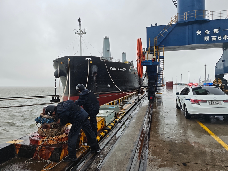 风还没到,雨已经泼下来了。码头能见度不到一百米,好几条在航的船临时申请进港避风。我们原以为这种天气,查验怕是要停了。结果电话响了,那头说:“应急机制启动了,我们马上上船。”