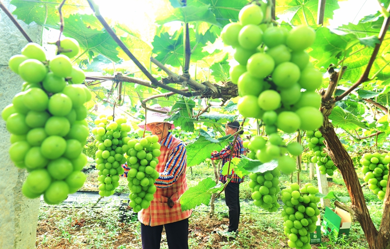 湖北恩施:葡萄丰收采摘忙 甜蜜经济助增收