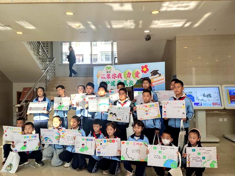 为给此次活动留下温馨的纪念,在图书馆门前区域专门设置了富有童趣和“护苗”元素的主题打卡拍照点。学生们纷纷聚集于此,与自己的阅读成果、手绘作品或是小伙伴们一起,在打卡点前绽放笑脸,拍照留念。