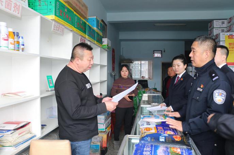 “作为农资经销商,要从源头上把好农资质量安全的关口,坚决抵制农资领域套牌侵权、制假售假、白皮袋种子、未审先推、无证生产经营等犯罪行为,严防假冒伪劣农资产品流入田间地头……”在公吉乡农资商店,检察官向商户了解销售现状、听取意见建议,并引导商户规范经营。行政机关执法人员以种子、化肥、农药为重点,认真查看店铺经营资格、进出货台账以及农资包装标识,检查是否存在假冒伪劣、质量不合格等违法行为,督促商户索证索票规范齐全、进货台账清晰明确。