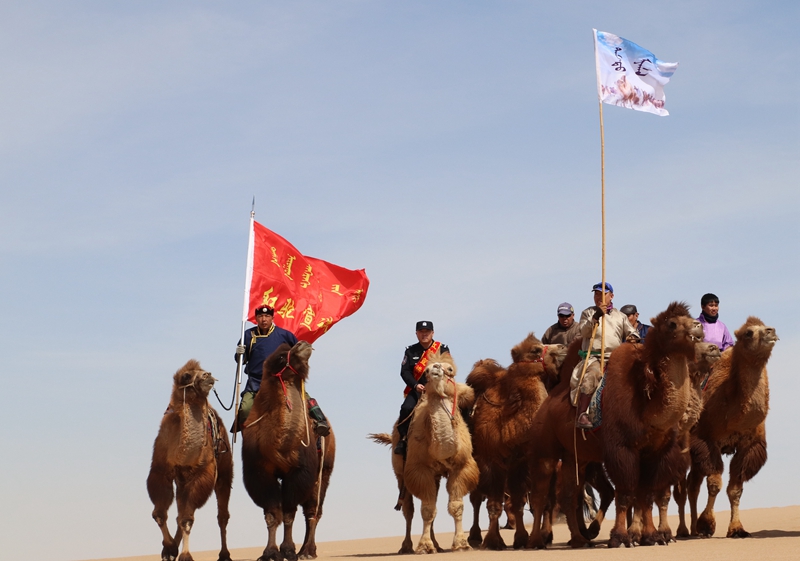 明媚春光暖,驼铃悠扬长。4月1日清晨,伴随着一声响亮的吆喝,内蒙古巴彦淖尔市乌拉特后旗的“红驼宣讲队”启程了。这是由巴彦淖尔边境管理支队乌拉特后旗边境管理大队所属5个边境派出所牵头,3个苏木(乡)的老党员、护边员共同组建的宣讲队伍,他们骑着红驼在初春的戈壁草原上行进,为牧民群众宣讲全国两会精神。